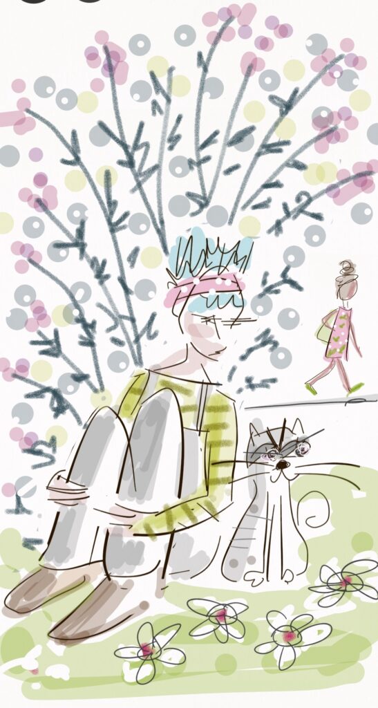 Ahí estaba yo, agazapada en la gramínea favorita de mademoiselle Fifí, aguantando su mirada de infinito desprecio: «Fifí, me he escondido aquí porque justo ahora pasa Emelina por delante de nuestra casa». Fifí echó un vistazo de través a la anciana que pasaba por la calle y volvió a examinarme con reprobación felina. «No quiero que me vea, Fifí. Recuerda cómo convirtió nuestras vidas en un infierno cuando quiso ser amiga mía. Cada vez que nos visitaba, pisoteaba todas las lechugas del huerto. Acuérdate del día que se dejó caer sobre el sofá y casi aplasta al Tío Jules. A ti te apagó una colilla en la tripa. No miraba nada; solo parloteaba todo el tiempo de tonterías». Mademoiselle Fifí algo debió recordar porque fijó su mirada gatuna más criminal sobre el puntito que era ya Emelina al fondo de la calle.
