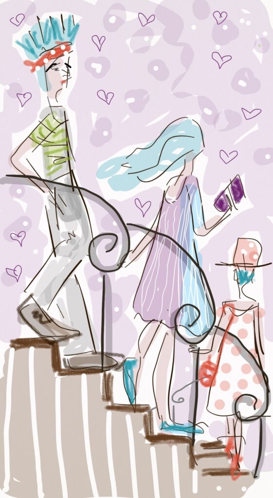 Fue en el undécimo día cuando vino el chasco. Llevábamos ya tiempo al pie de la escalera cuando vimos bajar a una sujeta que, pareciéndose a la dueña como una gota a otra gota de agua, no tenía nada que ver. Llevaba un fular al cuello que flotaba tras de sí, unas pestañas postizas que se le enredaban en la barandilla y unas sandalias con tacón block —muy rejuvenecedoras, eso es indiscutible. En el duodécimo, descendió los escalones una tipa con una bata toda llena de bolsillos y acericos. Iba forrada de bobinas, canillas, piezas de galón, pasamanería, botones, corchetes y otros elementos fijados al guardapolvo con imperdibles. Parecía una mercería ambulante. Así, un día tras otro —sin que sepamos cuál fue el factor desencadenante de este fenómeno—, recibimos a un personaje diferente que no era exactamente la dueña pero que, a un tiempo, sí lo era. Nos vimos obligados a identificar cada elemento mediante un alias, por una mera cuestión de orden público: Pequeña Lola, Pirriaque, Decoradora, Mangurrina, Disturbio, Orzowei, Hortelana, Enredo, Accidente, Ecuación, Flow… Como ya habrás intuido, los nombres los dejé a cargo de Jules y su cigarrito de la risa.